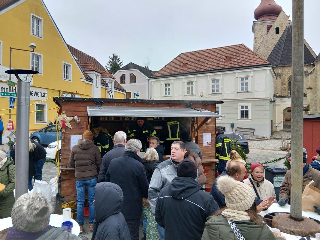 Bei uns gabs Schnitzelsemmel, Glühwein, Tee, Punsch und alkoholfreie Getränke.