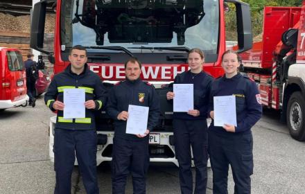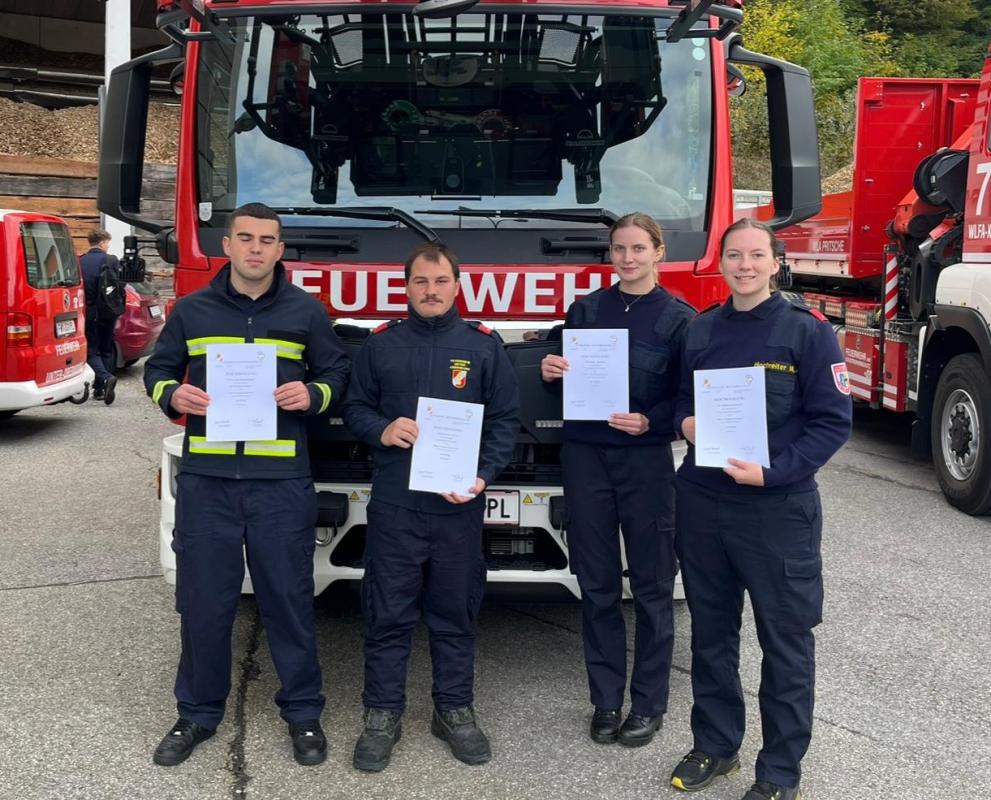 Wir gratulieren unseren Kameraden FM Boris Brankovic, FM Marlene Hochreiter, FM Leonie Hornung und PFM Lukas Krapfenbauer zum bestandenen Atemschutzgeräteträgerlehrgang!