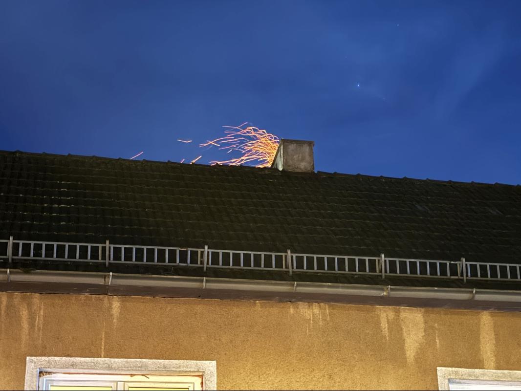 Am Abend des 12. März rief uns die Sirene zur selben Adresse wie am Abend zuvor. Diesmal schlugen aus dem Kamin Feuer und Funken.