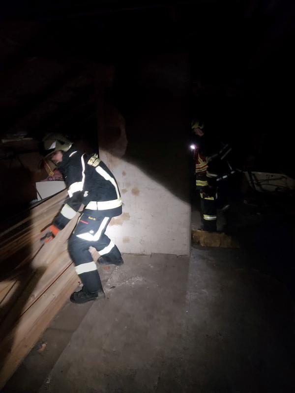 Umgehend wurde der Brandschutz aufgebaut. Unter schwerem Atemschutz schaufelte man den Ofen sowie den unteren Teil des brennenden Rauchfangs aus. Währenddessen kontrollierten die Kameraden den Kamin im Hausinneren, alles Brennbare wurde aus der Umgebung des Schornsteins entfernt.