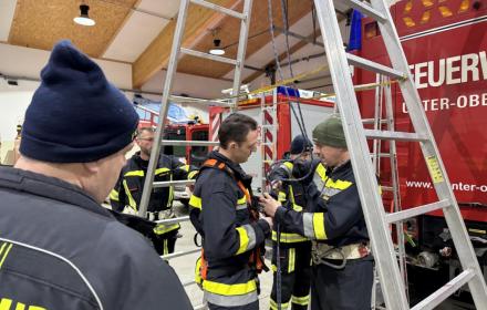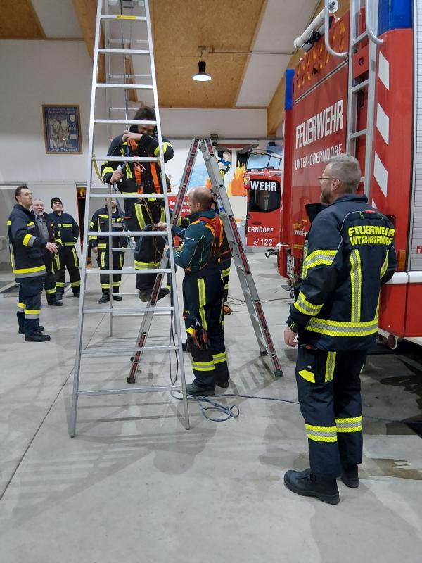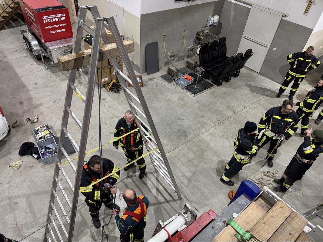 Weitere Ausbildungspunkte waren die Menschenrettung aus dem Aufzug im Kindergarten sowie eine Einschulung auf unserem neuen Kommandofahrzeug.