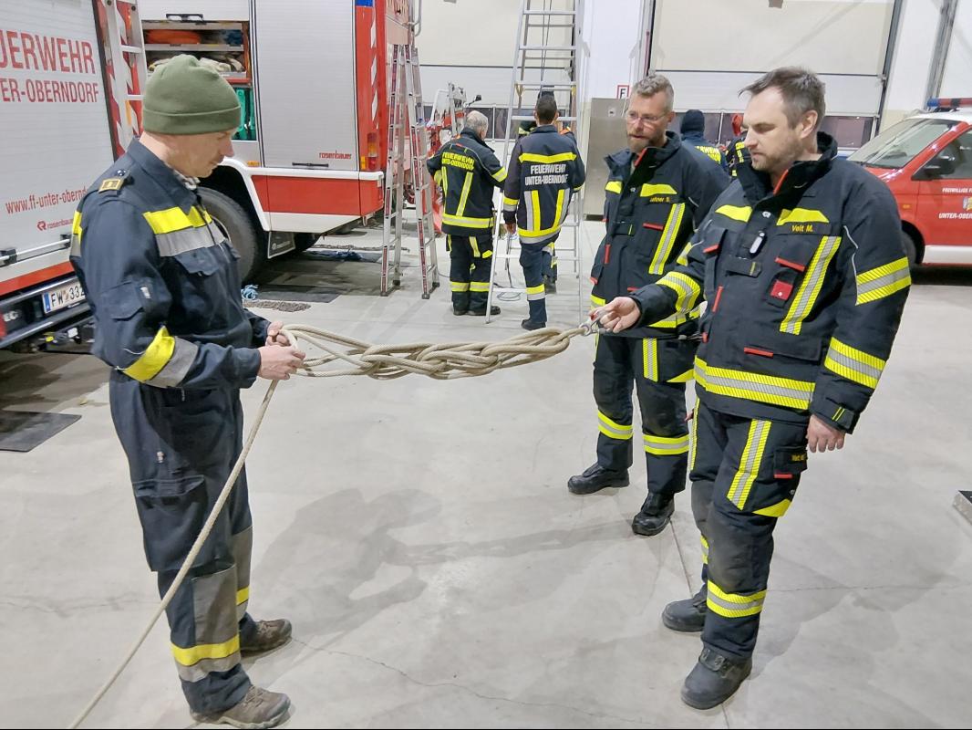 Wir beschäftigten uns in erster Linie mit den Möglichkeiten der Selbst- und Kameradensicherung, dem Abseilen sowie den Möglichkeiten der Versorgung von Rettungs- und Arbeitsleinen.