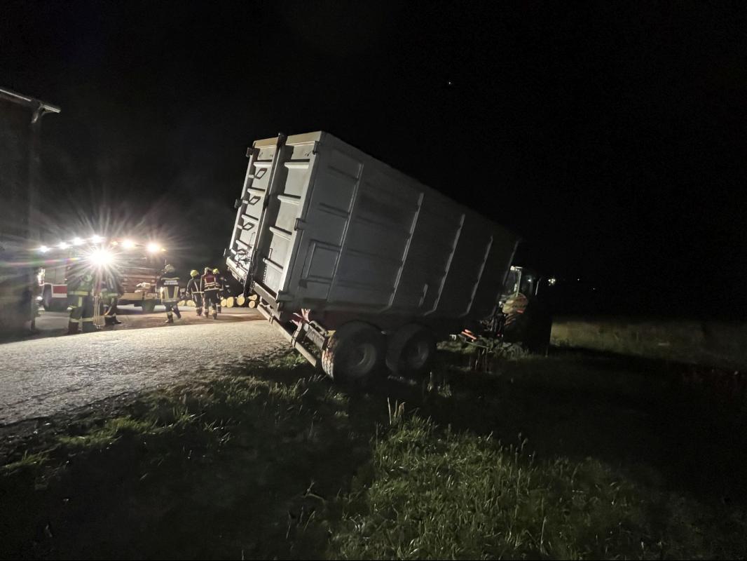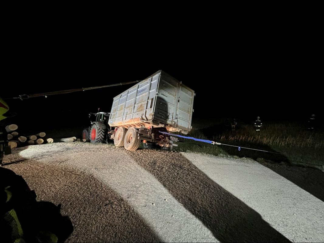 Schlussendlich konnte der Traktor samt Anhänger von der Seilwinde unseres Teleskopladers geborgen werden.