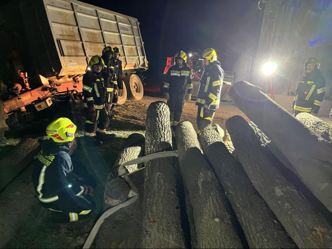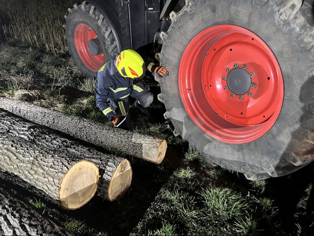 Bei der Monatsübung im März galt es zwei Szenarien zu bewältigen. Einerseits war ein Traktor samt Anhänger von der Fahrbahn abgekommen und drohte umzustürzen, andererseits kam dadurch ein Holzstoß durcheinander, unter dem schlussendlich eine Person eingeklemmt wurde.