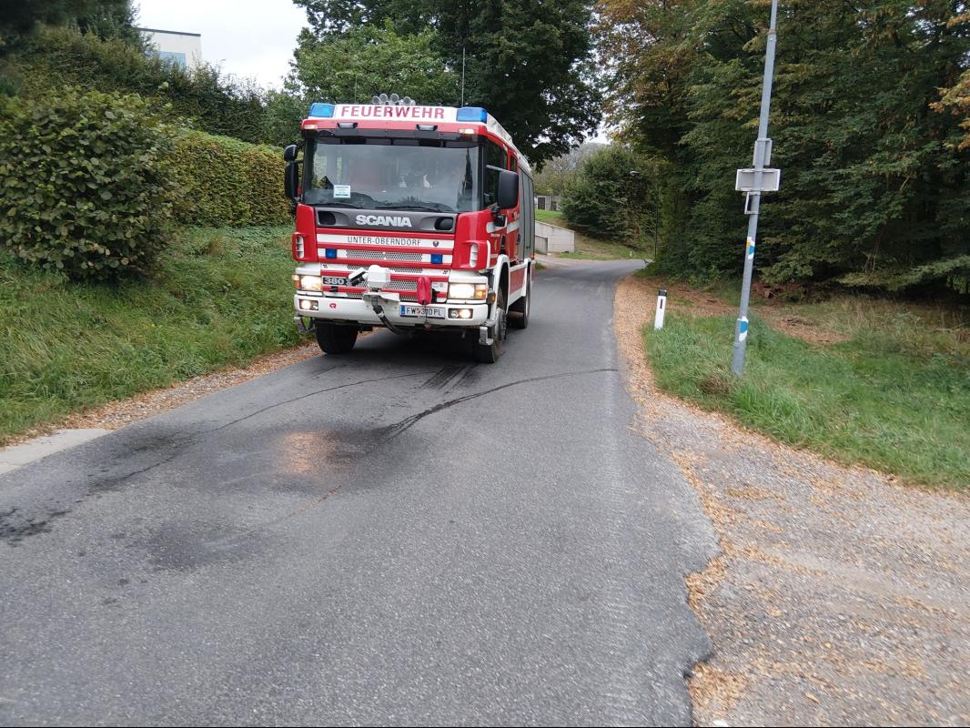 Am Vormittag des 23. September alarmierte uns die Bereichsalarmzentrale zu einem Ölaustritt nach Götzwiesen. Flink wurde mit dem Tanklöschfahrzeug 4000 sowie dem Kommandofahrzeug ausgerückt.
