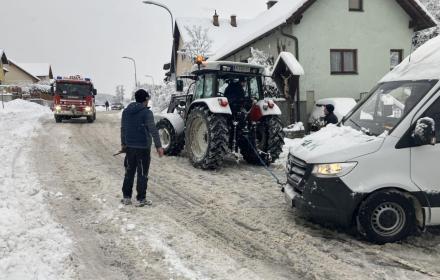 Auf der B44 kam ein Klein-LKW bei winterlichen Verhältnissen aufgrund seines Hinterradantriebes nicht mehr weiter. Zahlreiche Versuche doch noch voran zu kommen, endeten damit, dass das Kraftfahrzeug quer zur Fahrtrichtung zu stehen kam.