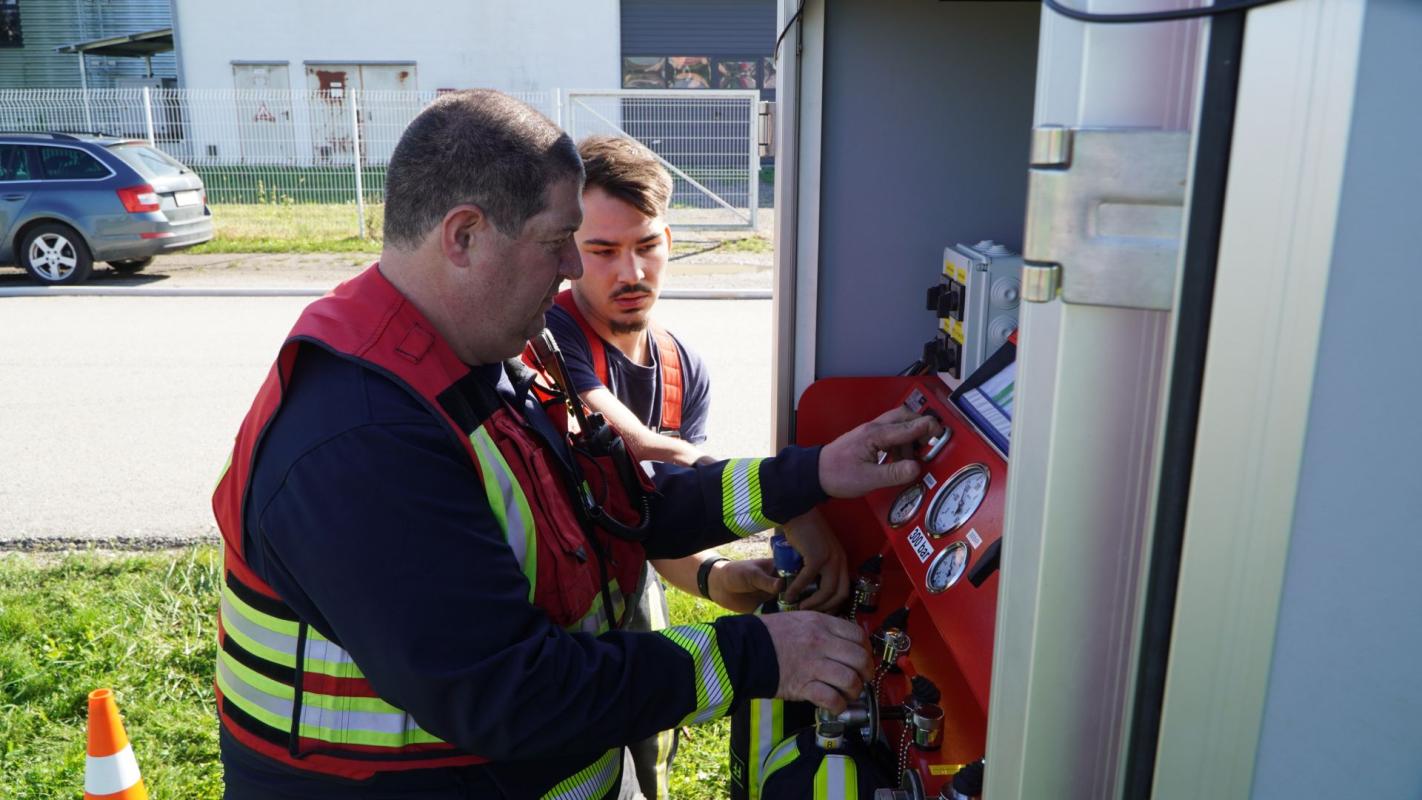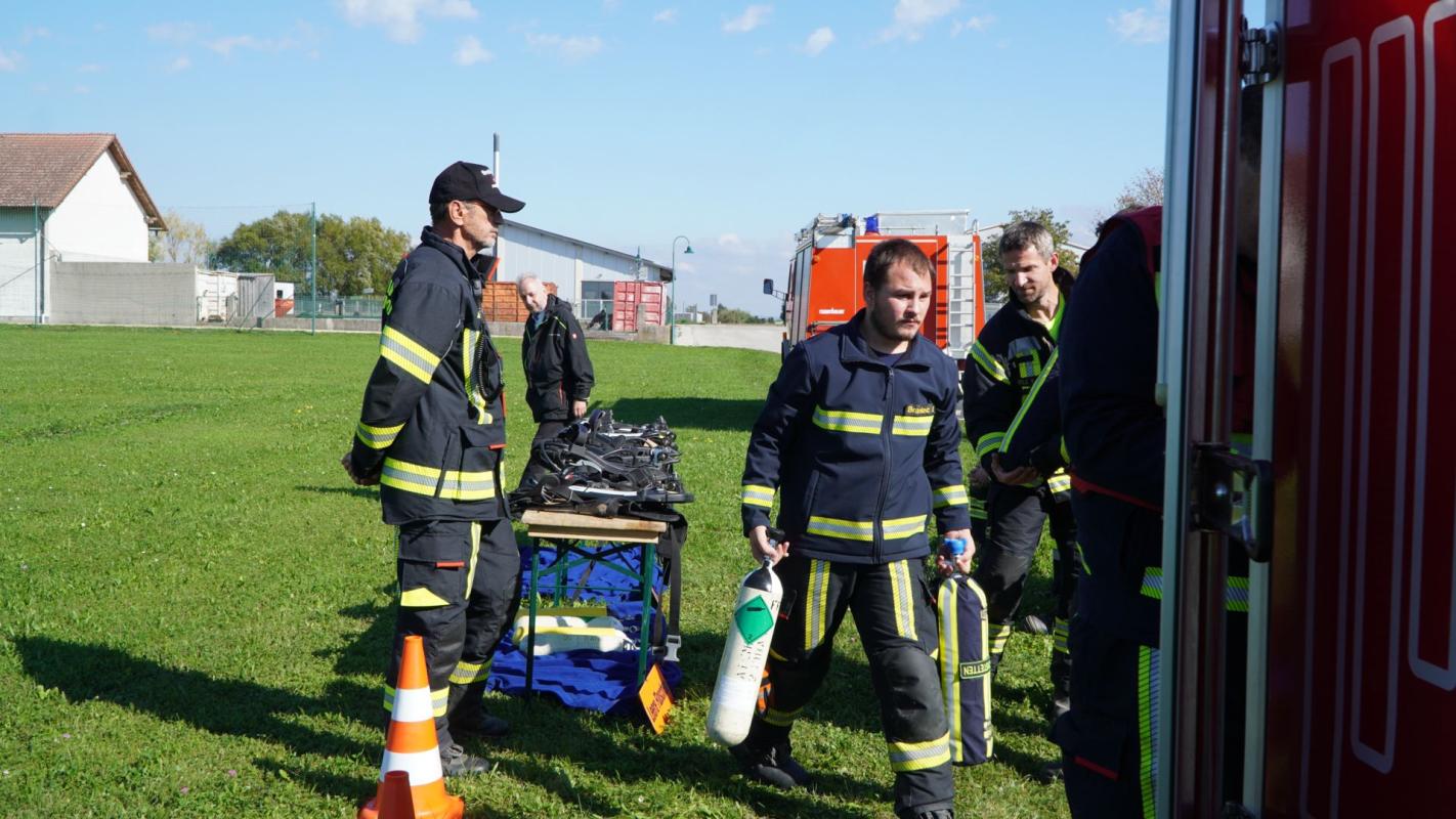 Im Rahmen der Unterabschnittsübung West waren wir mit unserem Vorausrüstfahrzeug samt Atemluftanhänger vor Ort um die zahlreichen Atemluftflaschen zu füllen.