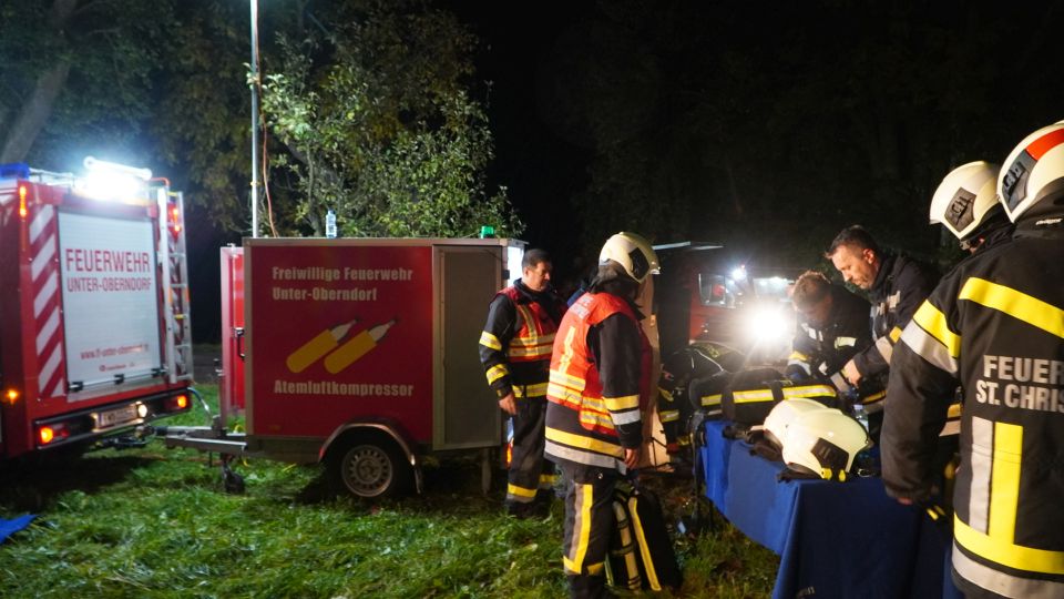 Im Rahmen der Unterabschnittsübung Süd waren wir mit unserem Vorausrüstfahrzeug samt Atemluftanhänger vor Ort um die zahlreichen Atemluftflaschen zu füllen.