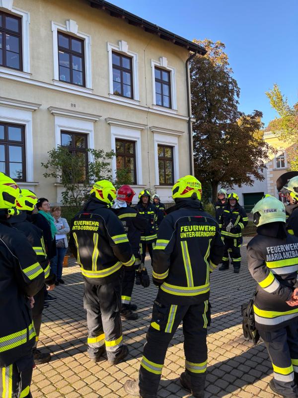Am Vormittag des 19. September wurde gemeinsam mit der FF Ma. Anzbach die Evakuierung der Volksschule sowie des Kindergartens in Maria Anzbach geübt. In diesem Rahmen konnten von den Kameraden auch die beiden Gebäude zwecks Orientierung im Einsatzfalle besichtigt werden.